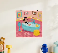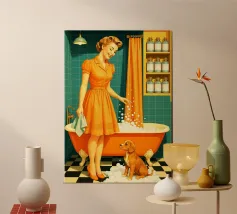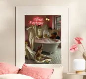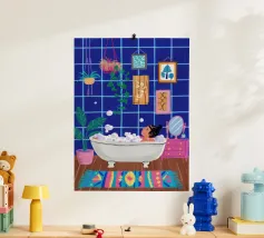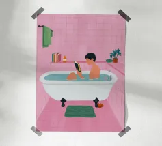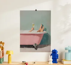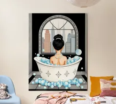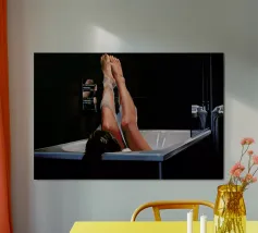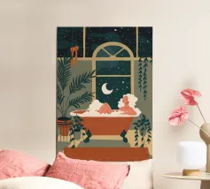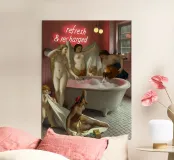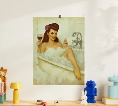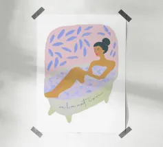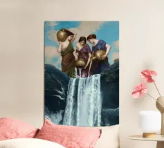 "In questo collage, bellissime ninfe, tratte da dipinti neoclassici, sono catturate nel momento più caro: l'inizio di una sessione di bagno. La scena emana serenità e ringiovanimento, riflessi nei volti delle ninfe, che sembrano immergersi non solo nell'acqua, ma in un rituale di rinnovamento dello spirito e dell'umore".