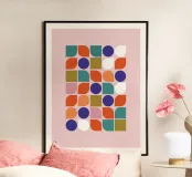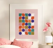 Un disegno astratto geometrico audace e giocoso, caratterizzato da un mix di cerchi, quadrati e forme curve in una vivace tavolozza di ispirazione rétro. La composizione equilibrata e i toni caldi lo rendono un'aggiunta elegante agli interni moderni, all'arredamento di metà secolo e alle pareti colorate delle gallerie. Perfetto per chi ama i motivi astratti e l'estetica geometrica senza tempo. Progettato da showmemars