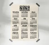 Pulito, audace e senza tempo: il calendario Retro Minimal 2026 è un'opera di stile e struttura. Il suo semplice sfondo beige e la tipografia di ispirazione vintage lo rendono un elegante accento da parete che si adatta perfettamente a qualsiasi interno. Perfetto per chi apprezza un design pratico ed estetico.