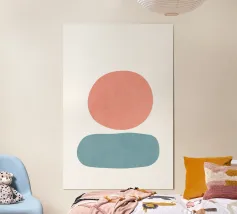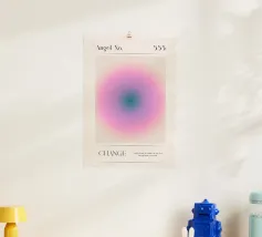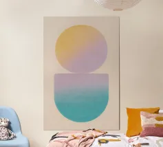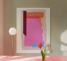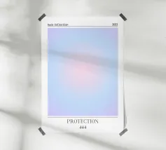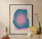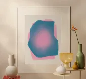 Un morbido gradiente fonde il blu e il rosa vibranti, formando forme organiche astratte e sovrapposte. Le transizioni morbide e il bagliore etereo creano una visione rilassante.