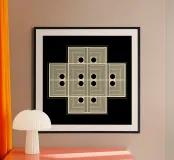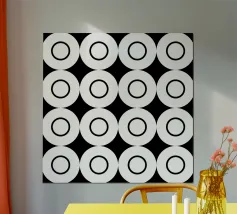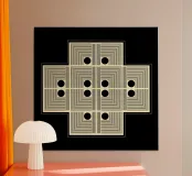 "Pattern of Emergence" è un'opera d'arte geometrica astratta che esplora come la bellezza complessa nasca da inizi semplici. L'opera presenta piccole sezioni ripetute che si combinano per formare un disegno più grande e intricato. I punti neri fungono da fulcro, evidenziando i punti di connessione e di transizione. L'opera suggerisce che i grandi disegni non appaiono e basta, ma emergono passo dopo passo, quando le parti più piccole lavorano insieme. Per questo motivo è un'opera d'arte da parete moderna molto interessante.