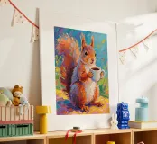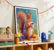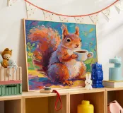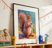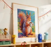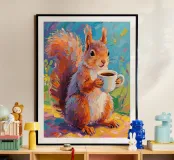 Scoiattolo che tiene una tazza di caffè con pittura fauvismo stile arte