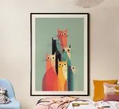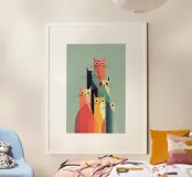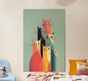 Una giocosa composizione di gatti minimalisti dai colori vivaci e audaci e dalle forme geometriche pulite. Quest'opera d'arte fonde il design moderno con il fascino felino, rendendola un pezzo sorprendente e stravagante per qualsiasi parete. Ideale per gli amanti dei gatti, gli appassionati di design e tutti coloro che amano le composizioni audaci ma equilibrate con un tocco di personalità.