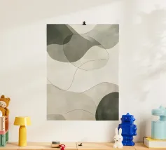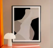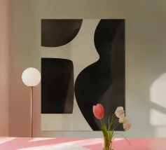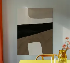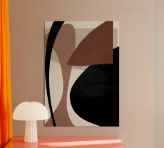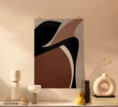 Forme organiche in nero, marrone, beige e colori neutri in un'opera d'arte contemporanea e minimalista adatta a interni moderni, scandinavi e in stile japandi.