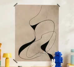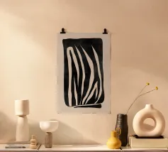 Forme organiche in nero, marrone, beige e colori neutri in un'opera d'arte contemporanea e minimalista adatta a interni moderni, scandinavi e in stile japandi.