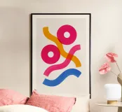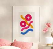 Cerchi, linee, movimento: Questo poster astratto combina forme giocose con colori audaci in rosa, arancione e blu. La composizione è dinamica, leggera e piena di energia, come una danza visiva di colori e forme. Ideale per interni moderni, spazi di lavoro creativi o amanti del design con il coraggio di abbracciare il colore.