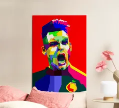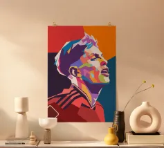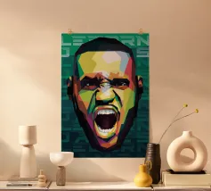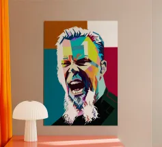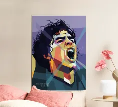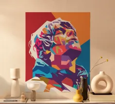 WPAP (Wedha's Pop Art Portrait) è uno stile artistico geometrico, vibrante e colorato che enfatizza gli angoli acuti e i contrasti di colore. Un ritratto di Sinéad O'Connor in stile WPAP presenterebbe la sua sorprendente struttura facciale con forme spigolose e taglienti in colori vivaci e contrastanti. La sua caratteristica testa rasata e il suo sguardo intenso sarebbero accentuati da audaci motivi geometrici. L'opera d'arte catturerebbe la sua profondità emotiva e il suo spirito ribelle, riflettendo la sua eredità di musicista e attivista senza paura.