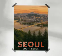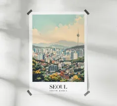 Skyline autunnale di Seul, Corea del Sud carta hahnemühle