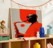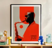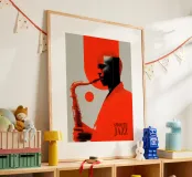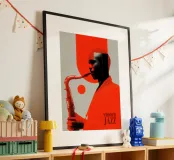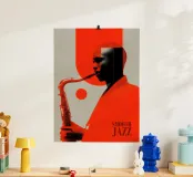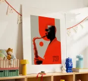 Pura freschezza con un look vintage: questo lavoro graficamente brillante cattura l'essenza del jazz liscio in un linguaggio di design minimalista. L'iconica combinazione di colori bicolore - rosso brillante su grigio tenue - ricorda le leggendarie copertine dei dischi Blue Note degli anni Sessanta. La griglia e la formazione di blocchi geometrici citano le tecniche di serigrafia di Warhol, mentre l'eleganza minimalista ricorda i manifesti cinematografici di Saul Bass. Gli elementi circolari danzano intorno al sassofono come note visive. Il retrò chic incontra la perfezione grafica. Un must per gli amanti del jazz e del design!