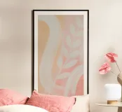 Toni tenui di albicocca e rosa. Stile: Acrilico astratto