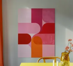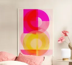 Questo poster d'arte moderna mostra forme intrecciate e trasparenti nei toni accesi del rosso, dell'arancione e del giallo. I colori caldi creano leggerezza e movimento e ricordano la luce del sole, il calore e l'energia. Ideale per interni minimalisti, spazi abitativi moderni o studi creativi: un richiamo armonioso per qualsiasi parete.