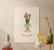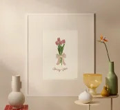 Un bouquet di freschezza e buonumore. Con i suoi tulipani vivaci e il messaggio gentile, questa illustrazione cattura l'essenza stessa della primavera. Ideale per aggiungere un tocco floreale colorato a un salotto, una cucina o uno spazio di lavoro, si sposa bene sia con l'arredamento scandinavo che con un universo più retrò. Un'atmosfera leggera, una boccata d'aria fresca, da appendere tutto l'anno.