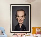 Illustrazione caricaturale umoristica del noto attore americano Steve Buscemi. Una delle caricature realizzate per la serie Celebrity Sunday, in cui un personaggio famoso viene ritratto in un giorno. L'idea è di mostrarli come in una fototessera per avere coerenza.