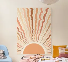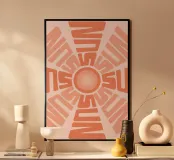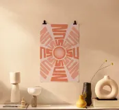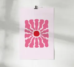 Lasciate che il sole entri con questa stampa grafica estetica con la parola 'SUN' disposta in modo creativo a formare un simbolo solare radioso. Realizzata nei caldi toni dell'arancio e del pesca su uno sfondo rosa tenue, quest'opera d'arte tipografica unica è perfetta per aggiungere calore e solarità al salotto, alla camera da letto, alla cucina o all'ufficio. Prodotta come stampa d'arte digitale di alta qualità con un'impressionante risoluzione di 7000x5000 pixel a 300 dpi, garantisce dettagli eccezionali e una brillante fedeltà dei colori, adatta alla stampa in vari formati. Un pezzo allegro e moderno per coloro che amano il design creativo e la b