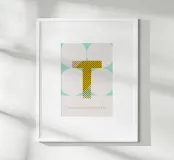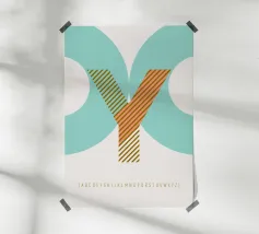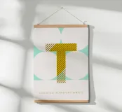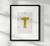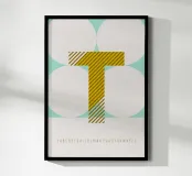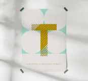 T -TYPEFACE in un design senza tempo - poster tipografico con colori vivaci e un gioco di forme sullo sfondo.
