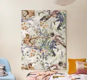 "I motivi e i disegni di Burcu Korkmazyurek si trasferiscono perfettamente dalle radici della moda alle stampe su tela. I suoi realistici motivi floreali e animali si integrano o contrastano con sfondi che vanno dal"