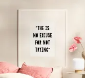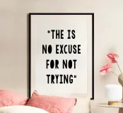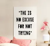 Una potente opera motivazionale con la frase "There's No Reason Not to Try" (Non c'è motivo per non provarci) visualizzata a caratteri cubitali e d'impatto, unita a perseveranza e determinazione. Quest'opera d'arte emana ispirazione e grinta.