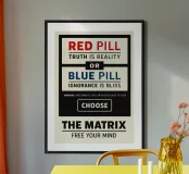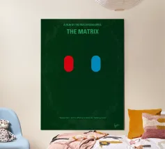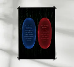 Stampa di Matrix, poster cinematografico alternativo, arte murale minimale, b&n, pillola rossa, pillola blu, verità, realtà, scelta, distopia, regalo per i fan del cinema