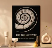 Stampa di The Twilight Zone, Paradosso temporale, Poster cinematografico alternativo, Arte da parete minimale, Bianco e nero, Orologio a spirale, Quinta dimensione, Regalo per i fan del cinema