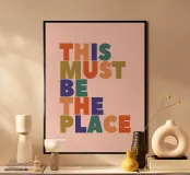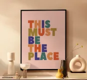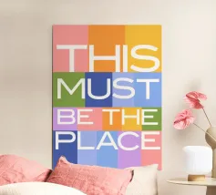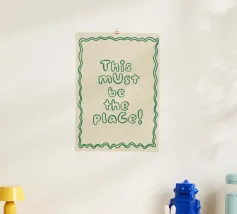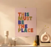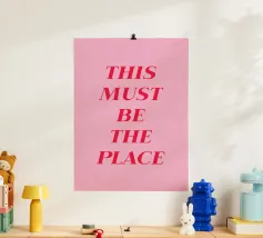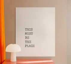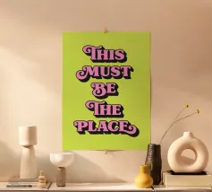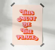 Una stampa tipografica audace e nostalgica con la scritta "This Must Be The Place" in lettere retrò. Perfetta per aggiungere un tocco accogliente a qualsiasi casa grazie alla sua estetica calda, ottimista e vintage. Un pezzo colorato che illumina qualsiasi spazio, ideale per gli amanti dei caratteri retrò e dell'arredamento dopaminico. Da showmemars