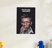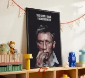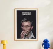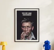 "Daniel Craig nei panni di James Bond, livido e insanguinato, guarda intensamente in avanti tenendo una sigaretta sulle labbra, trasmettendo un senso di cupa determinazione e incrollabile risolutezza.