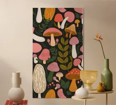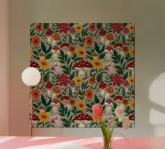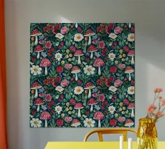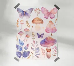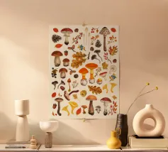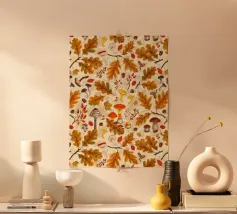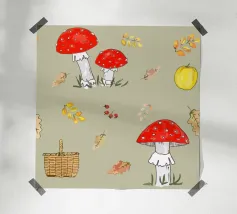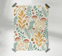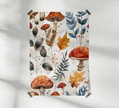 Tiny mushrooms and leaves pattern carta hahnemühle