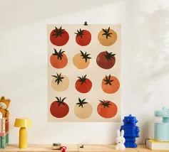 Il design allegro e colorato presenta un motivo di pomodori fresco e appetitoso.