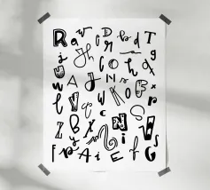 Questo motivo di caratteri speciali di tipografia digitale è un'opera d'arte di grande impatto visivo. L'opera d'arte presenta un audace e preciso motivo di caratteri speciali ripetuti. L'artista (kathrinmay) ha prestato attenzione a dettagli quali spaziatura, crenatura e layout.