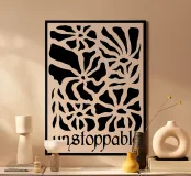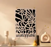 Se siete inarrestabili quando inseguite i vostri sogni e le vostre ambizioni, questo è il design giusto per voi. Fiori neri astratti con tipografia. Poiché questo disegno è disponibile in quattro varianti di colore, può essere combinato in un set di 2, 3 o 4 colori.