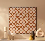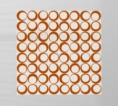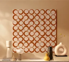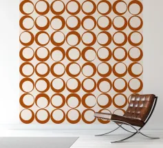 Questo motivo ad anelli retrò arancione bruciato trasmette un'energia calda e nostalgica, ispirata all'arredamento eclettico degli anni '60 e '70. Le sue curve geometriche fluide creano una dichiarazione audace ma accogliente, perfetta per stampe d'arte, tessuti e interni moderni e retrò.