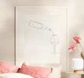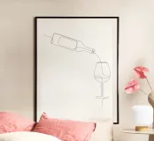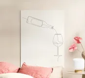 Disegno a linee continue di vino che si versa dalla bottiglia al bicchiere