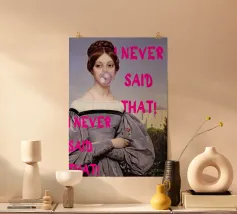 Abbracciate lo stile senza sforzo con "I Woke Up Like This", una divertente stampa pop art che fonde con umorismo la ritrattistica classica con una frase moderna e popolare. Questa accattivante opera d'arte raffigura una figura storica regale, adornata da delicati fiori, che soffia giocosamente una bolla di gomma da masticare rosa lucido. Il testo rosa acceso "I WOKE UP LIKE THIS" (Mi sono svegliata così) sovrasta l'immagine e rappresenta un'affermazione spiritosa e comprensibile sulla bellezza naturale (o su una mattinata informale!). Gli schizzi di vernice rosa aggiungono un tocco di stile. È una miscela perfetta di fascino senza tempo e umorismo contemporaneo, ideale per aggiungere personalità e un tocco di leggerezza.