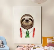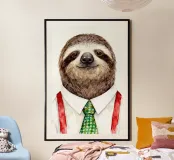 Un bradipo lento e costante, vestito in modo ordinato in ufficio, che porta con sé una calma sicurezza sul posto di lavoro.