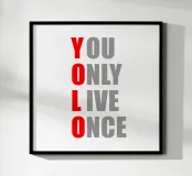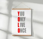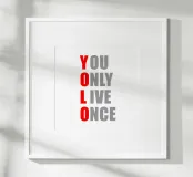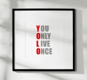 Questo potente lavoro tipografico incarna l'attivismo del design minimalista. L'intelligente acronimo Y-O-L-O viene trasformato in un messaggio visivo attraverso una precisa colorazione in rosso e grigio. Il carattere sans serif ricorda le tradizioni del Bauhaus e i manifesti di protesta contemporanei. Lo stile ridotto cita la tipografia politica di Barbara Kruger e la word art di Ed Ruscha. Un pezzo provocatorio che unisce gioia di vivere ed eleganza grafica, perfetto per ambienti moderni e luminosi.