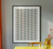 Questa opera d'arte è un motivo a zigzag verde senza soluzione di continuità che unisce l'estetica moderna al fascino retrò. Le linee decise e il verde vibrante aggiungono un'atmosfera dinamica e fresca. Perfetto per chiunque voglia aggiungere un tocco di stile al proprio arredamento. Date un'occhiata e date un tocco di audace eleganza al vostro spazio!