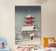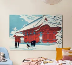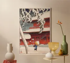"Il tempio Zojoji a Shiba" cattura magnificamente la grandezza storica di uno dei templi più iconici di Tokyo, incorniciato da un ambiente sereno e da un'architettura tradizionale. La composizione mette in risalto i dettagli intricati e l'atmosfera tranquilla del tempio, evocando un senso di calma e riverenza. Perfetta per gli amanti dell'arte giapponese, dei monumenti storici e delle decorazioni murali tranquille, quest'opera d'arte conferisce un'eleganza senza tempo e una ricchezza culturale a soggiorni, uffici o spazi creativi.