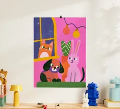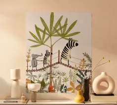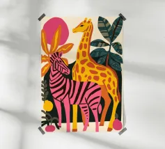 Portate l'allegria di un parco naturale in casa vostra con la stampa Retro Pop Zoo! Questo disegno combina uno stile pop moderno e colorato con illustrazioni di animali carini e coccolosi.