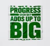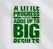 "Arte tipografica d'ispirazione con la frase 'A LITTLE PROGRESS EACH DAY ADDS UP TO BIG RESULTS' (Un piccolo progresso ogni giorno porta a grandi risultati) in grassetto verde, con caratteri rovinati su uno sfondo bianco pulito, che trasmette un messaggio di perseveranza e realizzazione!",