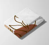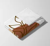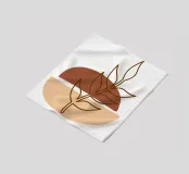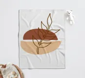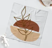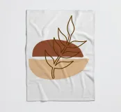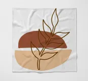 Una composizione astratta presenta un semplice sfondo geometrico marrone e beige con un delicato disegno al tratto di un ramoscello frondoso. Il design minimalista enfatizza gli elementi naturali in un equilibrio armonioso.