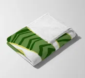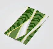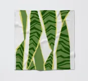 I motivi geometrici astratti a strisce verdi e gialle creano un senso di movimento nella composizione. Il disegno presenta elementi verticali di forma irregolare che suggeriscono un tema naturale.