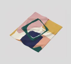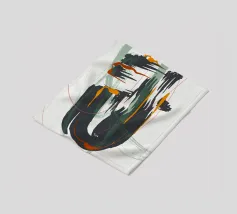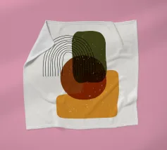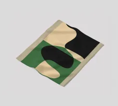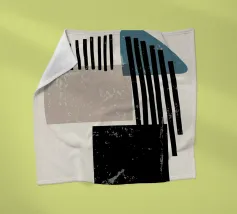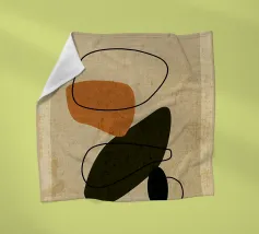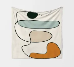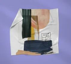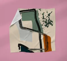 Forme astratte e linee decise si fondono in un equilibrio di colori tenui, creando una composizione dinamica. Le forme organiche si intrecciano, mentre sprazzi di verde aggiungono profondità e movimento.