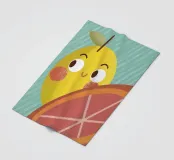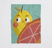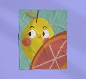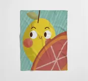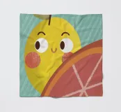 L'allegra illustrazione presenta un personaggio sorridente di un limone giallo accanto a una fetta d'arancia.