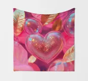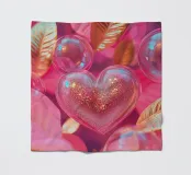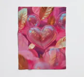 Stampa d'arte Cuore rosa con accenti oro e glitter - Quest'opera d'arte di grande impatto visivo presenta un cuore rosa scintillante su una superficie simile al vetro, circondato da foglie d'oro e bolle traslucide. I colori vivaci del rosa e dell'oro, combinati con una luce soffusa, creano un'atmosfera romantica e sognante. I dettagli intricati e le texture riflettenti dell'opera d'arte la rendono un regalo perfetto per gli amanti dell'arredamento moderno e stravagante e dell'arte romantica.