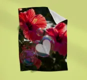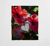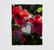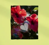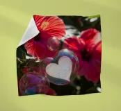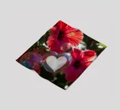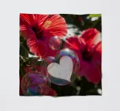 Cuore romantico con fiori di ibisco rossi - Questa vibrante opera d'arte presenta un cuore scintillante in una bolla trasparente, che fluttua tra fiori di ibisco rosso brillante in piena fioritura. Le foglie verdi e i petali rosso intenso creano un contrasto sorprendente, mentre la luce del sole si riflette magnificamente sulla bolla, aggiungendo un'atmosfera sognante e stravagante. Questo quadro è ideale per aggiungere un tocco di romanticismo e di eleganza ispirata alla natura a qualsiasi ambiente.