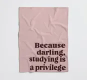 "La frase 'Perché tesoro, studiare è un privilegio' è presentata in un carattere serif in grassetto, marrone scuro, su uno sfondo rosa tenue",