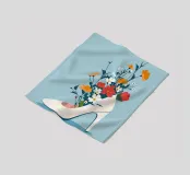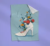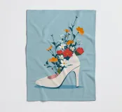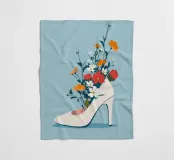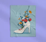 Un'illustrazione vibrante e potenziante di uno stiletto che sboccia con fiori colorati, simbolo dell'amore per se stesse, della crescita e della forza femminile. Lo sfondo blu minimale esalta la composizione audace ma delicata, trasformando la moda in una metafora di fiducia e bellezza. Perfetto per gli interni che celebrano la positività, l'emancipazione e l'individualità: un pezzo moderno che ispira le donne a prosperare con grazia e stile.