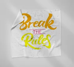Scrittura Break Rules in eleganti tonalità di blu con un effetto ricco e strutturato.