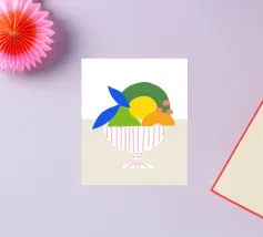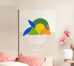 Questo cesto di frutta colorato come illustrazione moderna porta immediatamente freschezza e leggerezza in qualsiasi cucina. Il design colorato combina forme disegnate a mano, linee pulite e un'estetica giocosa - perfetto come murale per la cucina, la sala da pranzo o l'angolo della colazione. La stampa si adatta a concetti di interni sia minimalisti che colorati e aggiunge un accento moderno e amichevole. Ideale per chi è alla ricerca di stampe artistiche fruttate, di decorazioni murali illustrative e di un aggiornamento di stile per la cucina.