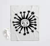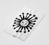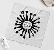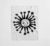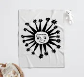 Questo disegno nero e astratto della luna celeste, circondato da stelle scintillanti, conferisce un tocco artistico e tagliente e combina il misticismo del cielo notturno con uno stile contemporaneo e all'avanguardia, rendendolo un pezzo di spicco per qualsiasi spazio e oggetto.