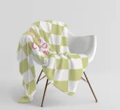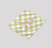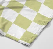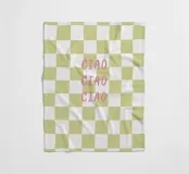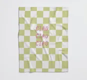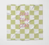scritta ciao ciao ciao su motivo a quadri color pistacchio.